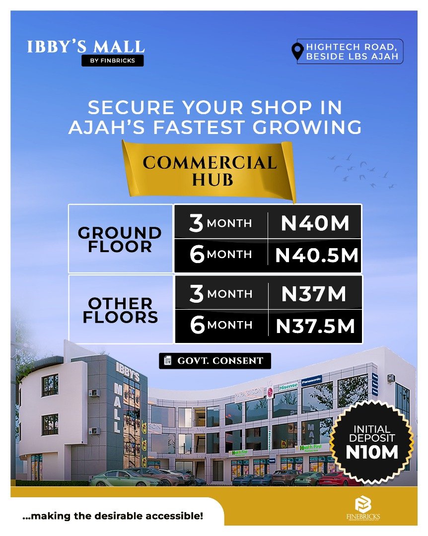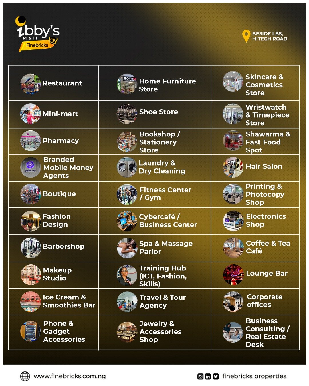 Whether you’re an investor seeking a steady income stream or a business owner desiring a strategic base of operations, Ibbys Mall by FineBricks offers the perfect blend of prestige, performance, and profitability. Secure your space today and be part of a development that’s redefining business excellence in Lagos.
